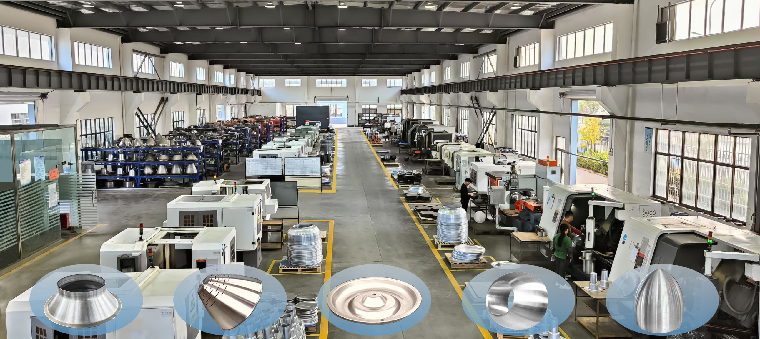 工廠(chǎng)規(guī)模達(dá)20000平方米,建筑面積12000平方,擁有四棟多功能廠(chǎng)房,員工110余人,擁有高精密數(shù)控旋壓機(jī)數(shù)十臺(tái),配有完整的表面處理配套設(shè)備。
